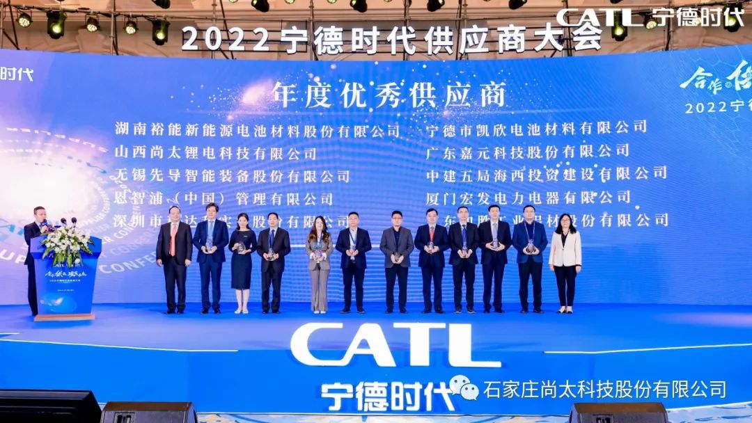 在大会现场,宁德时代为优秀供应商颁发了“年度优秀供应商”以及“技术创新奖”、“质量卓越奖”、“最佳交付奖”、“可持续发展推进奖”等奖项。公司全资子公司山西www.乐鱼锂电科技有限公司作为负极材料行业唯一的供应商,获得了份量最重的“年度优秀供应商”大奖。
